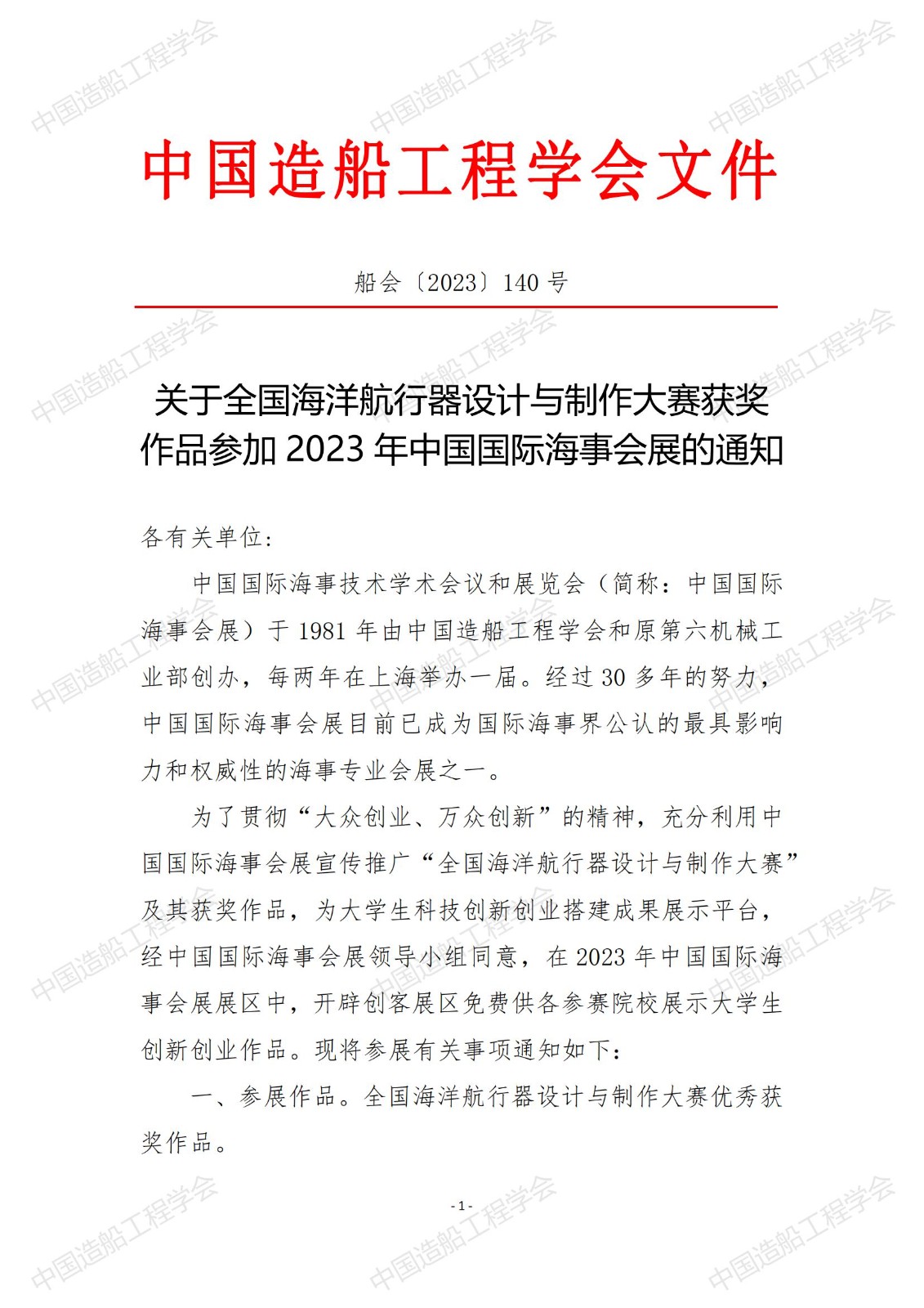 關(guān)于全國海洋航行器設(shè)計與制作大賽獲獎作品參加 2023 年中國國際海事會展的通知